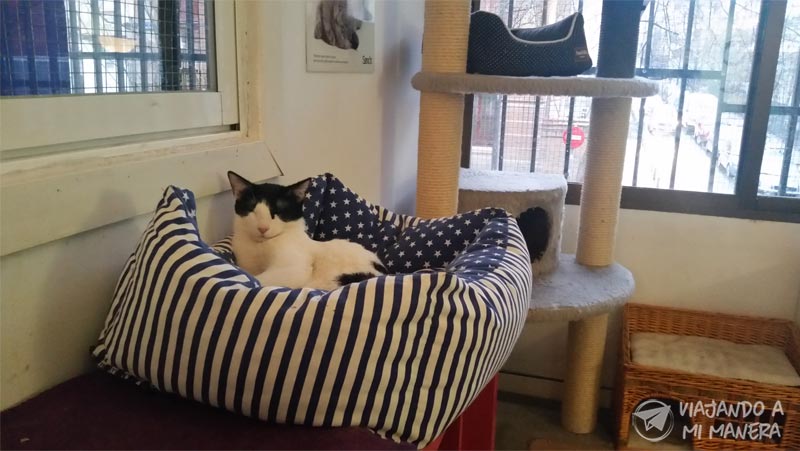 Y cómo no, lo más importante de todo es el bienestar del gato, por lo que tienen un aforo limitado para evitar aglomeraciones que los puedan agobiar, de ahí que se recomienda reservar con antelación en su página web, especialmente los fines de semana y festivos. Nosotros fuimos un sábado por la tarde y menos mal que lo habíamos hecho, ya que estaban completos.